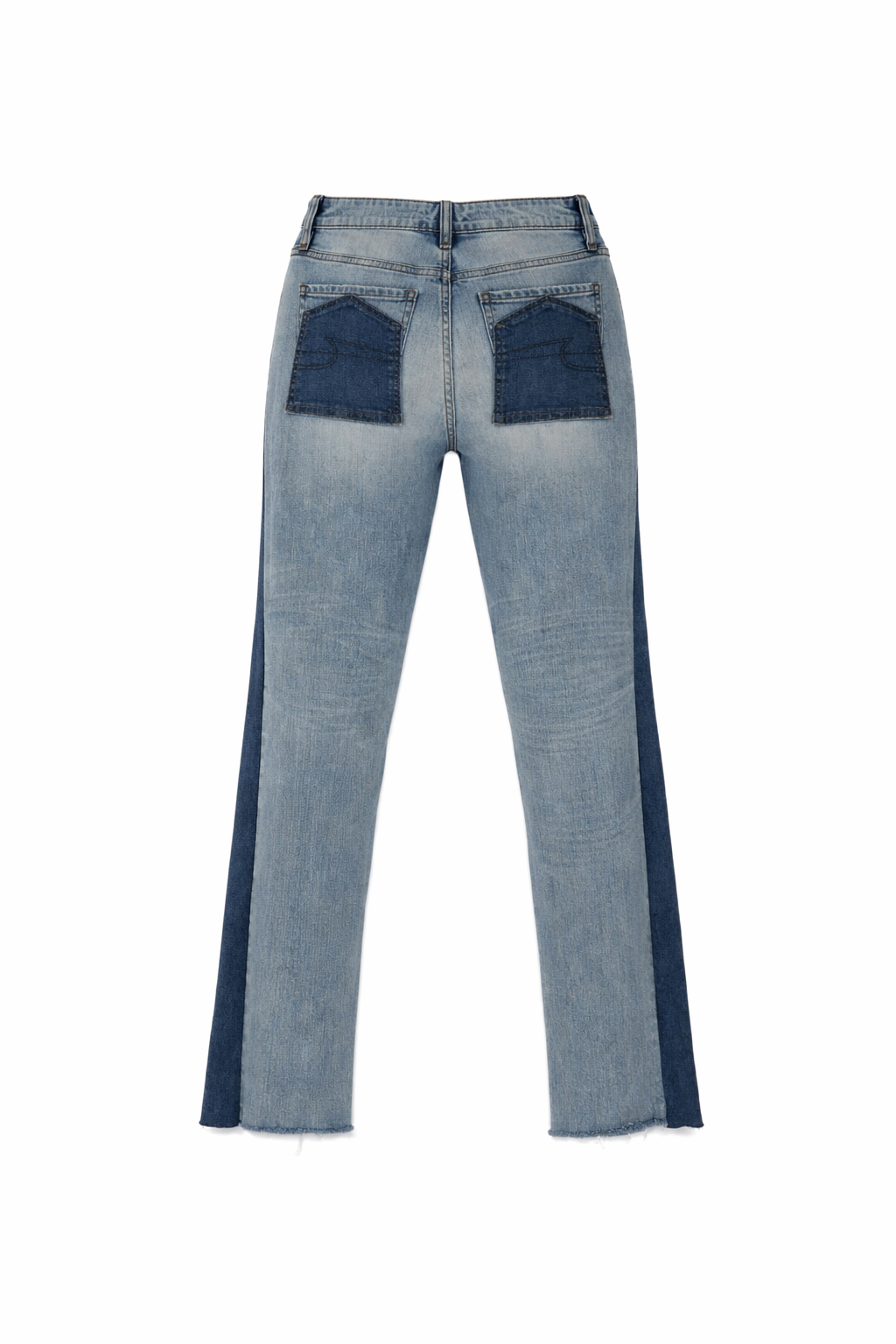 Upside down back Jean pocket, with contrast on side seams.